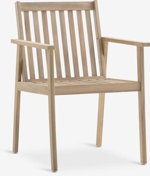 Baštenska stolica od belog nauljenog FSC™ tvrdog drveta. Izdržljivo drvo je tretirano belim uljem kako bi se zaštitilo i dalo mu svetliju boju. Preporučuje se redovno premazivanje drveta uljem kako bi se i dalje održala njegova boja i zaštitilo od vlage.