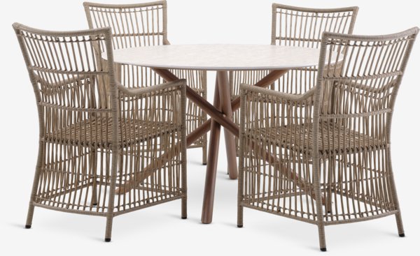 SANDVIG + FJELLERUPSANDVIG Ø120 sto bež + 4 FJELLERUP stolice natur