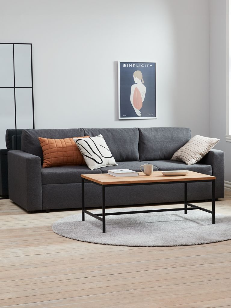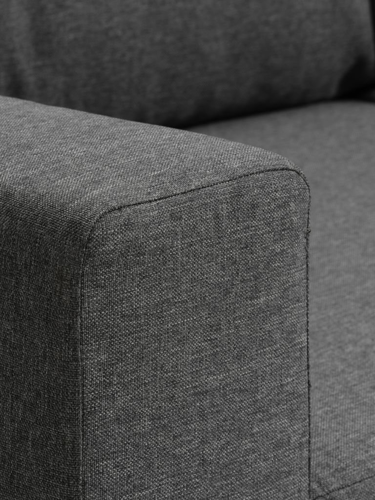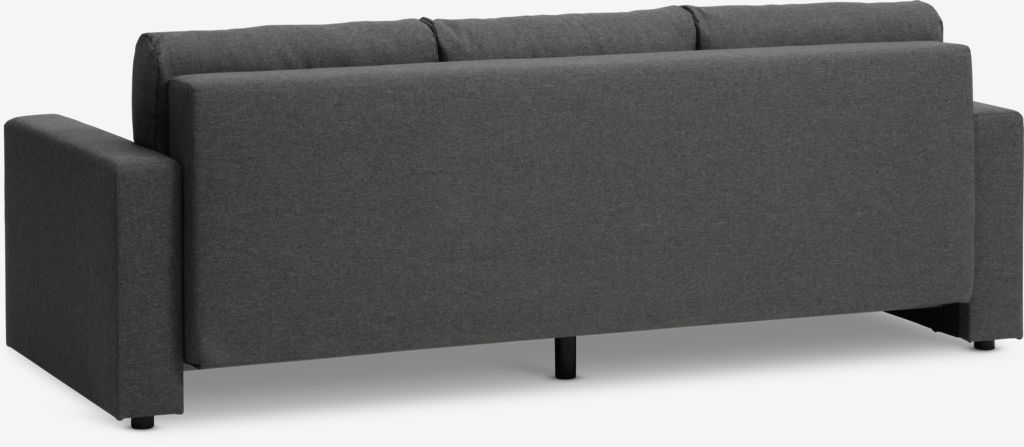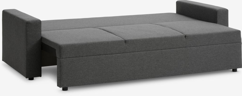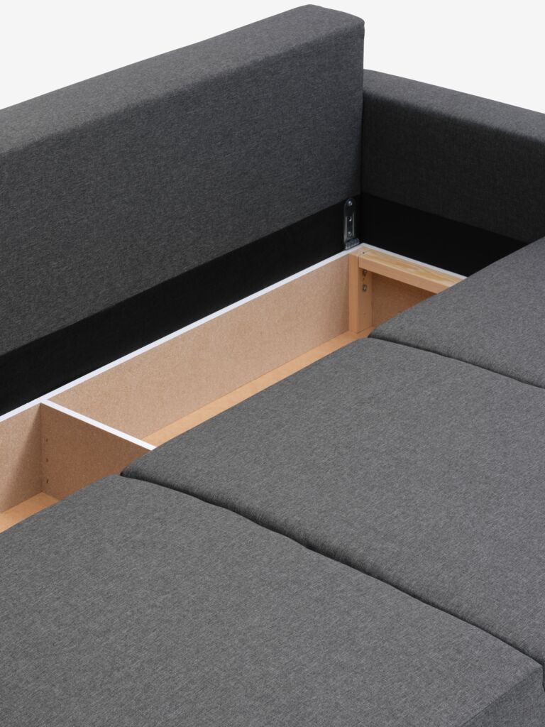 Trosed od tkanine. Lako se razvlači u krevet. Sedište i naslon od pene. Sa prostorom za odlaganje. Površina za spavanje: 135x195 cm. Š225xV74xDub91 cm