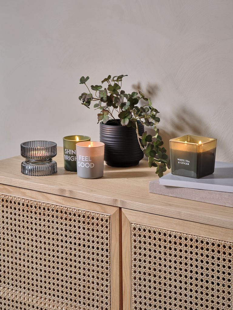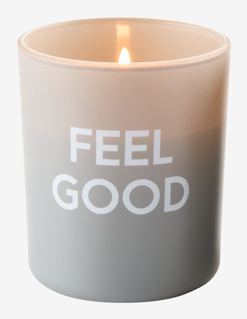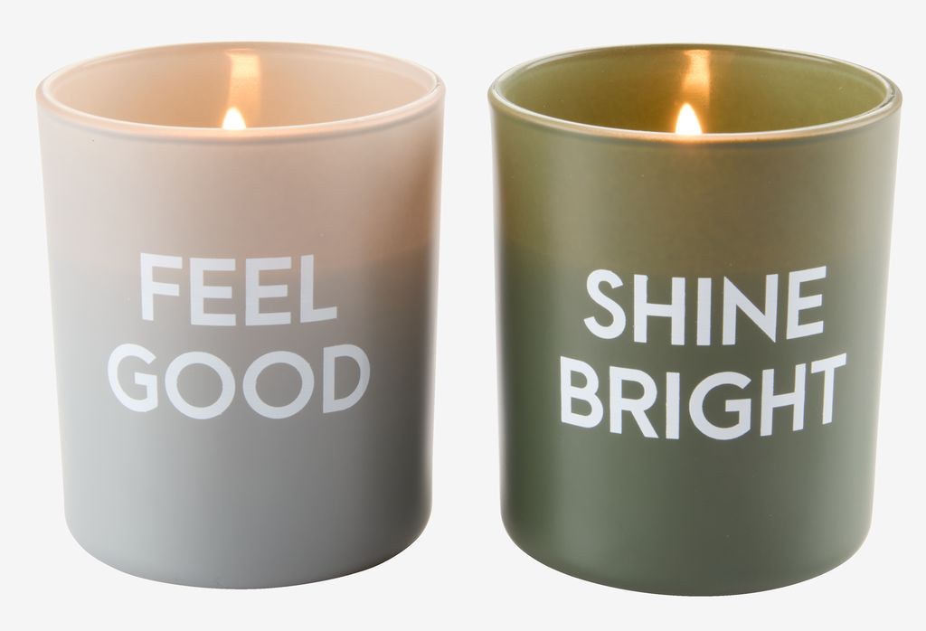 Mirišljava sveća u jednostavnoj staklenoj posudi sa belim tekstom. Ova sveća za unutrašnji prostor ima vreme gorenja od 25 sati, ispunjavajući vašu sobu prijatnim mirisom. Dostupna u raznim bojama. Ø7xV8 cm