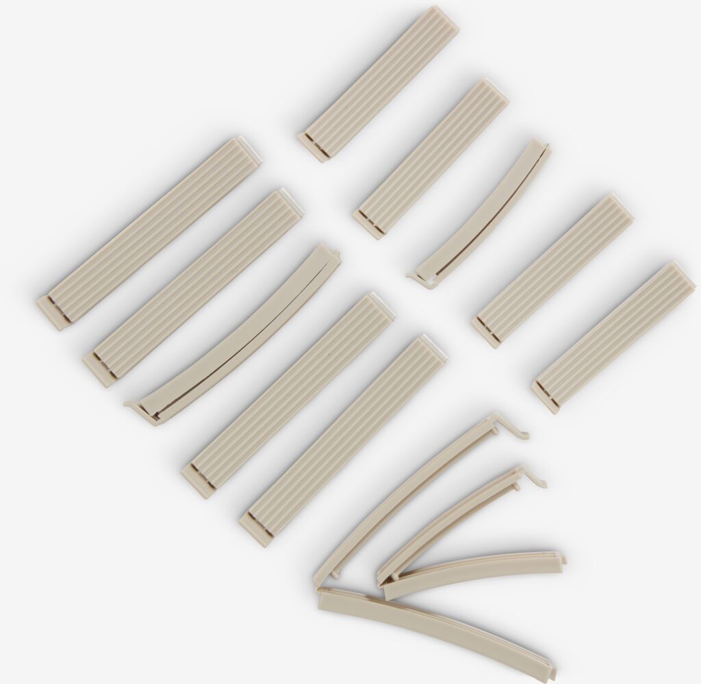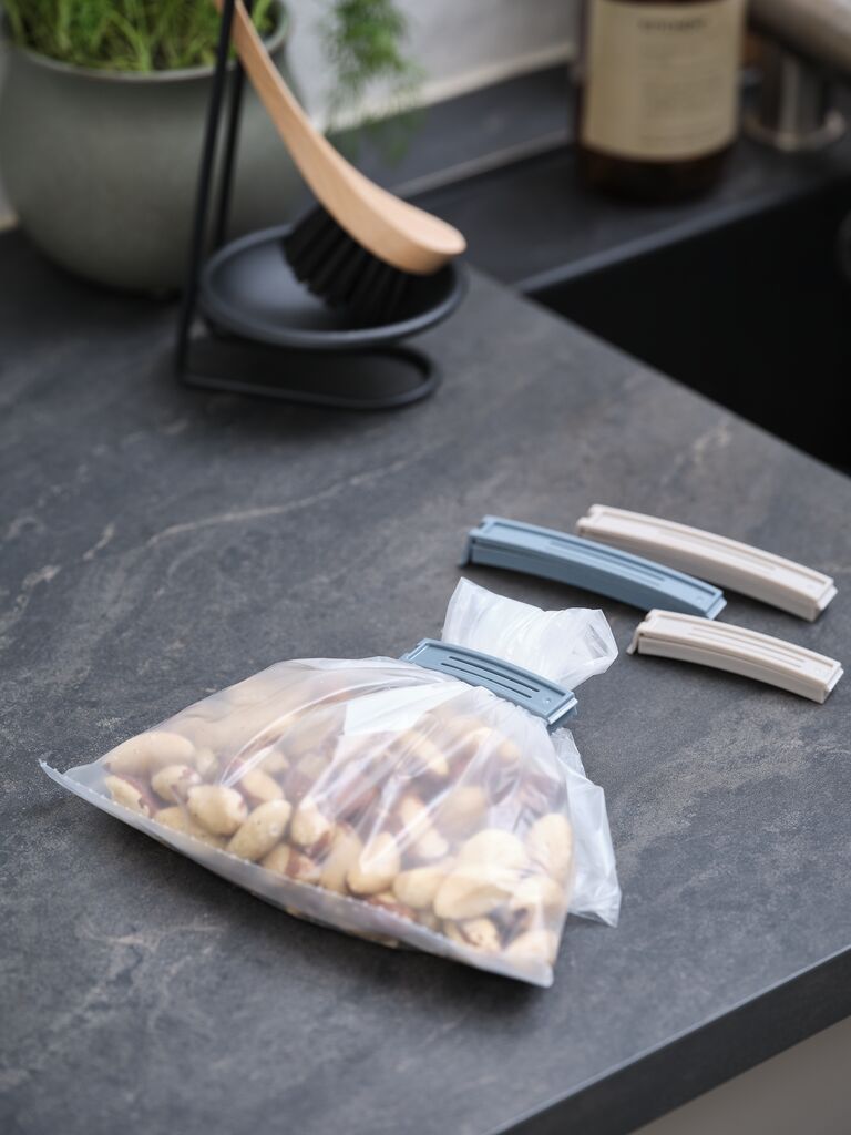 Pakovanje od 12 klipsa za hermetičko zatvaranje u raznim bojama i veličinama. One omogućavaju hermetičko skladištenje kako bi hrana ostala sveža. Spojnice su bezbedne za pranje u mašini za pranje suđa. Š1/1xD9/7xV1/1 cm