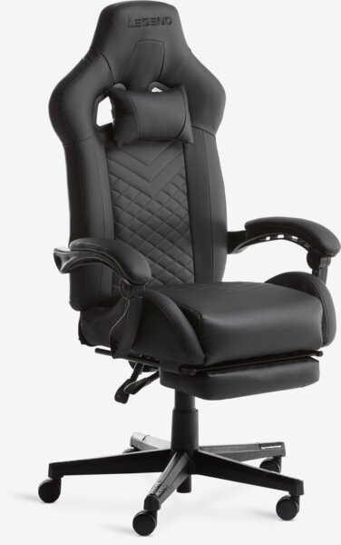 HALLUMGejmerska stolica HALLUM sa nasl. za noge crna vešt. koža