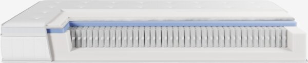 Dušek sa multidžepićastim oprugama (520/m²), podeljen na 7 zona udobnosti koje pružaju jedinstvenu, ergonomski pravilnu potporu. Dušek je ispunjen hladnom i polieterskom penom. Navlaka sa rashlađujućim polietilenom sa jedne strane, koji ima trenutni rashlađujući efekat. Navlaka je gusto prošivena memorijskom penom koja ublažava pritisak na telo. Visina: 28 cm. 90x190 cm