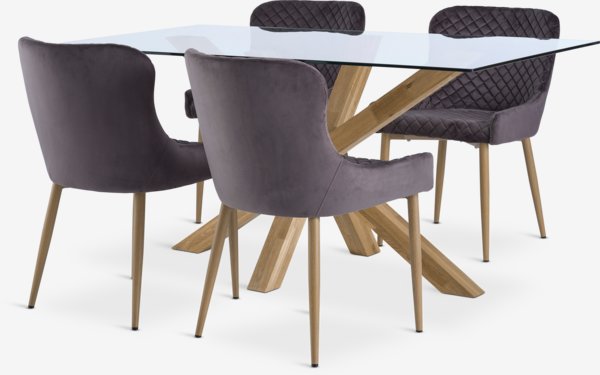 AGERBY D160 sto natur hrast + 4 PEBRINGE stolice sivi baršun