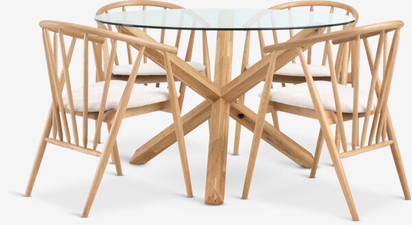 AGERBY + LYKSBORGAGERBY Ø119 sto natur hrast + 4 LYKSBORG stolice natur hrast