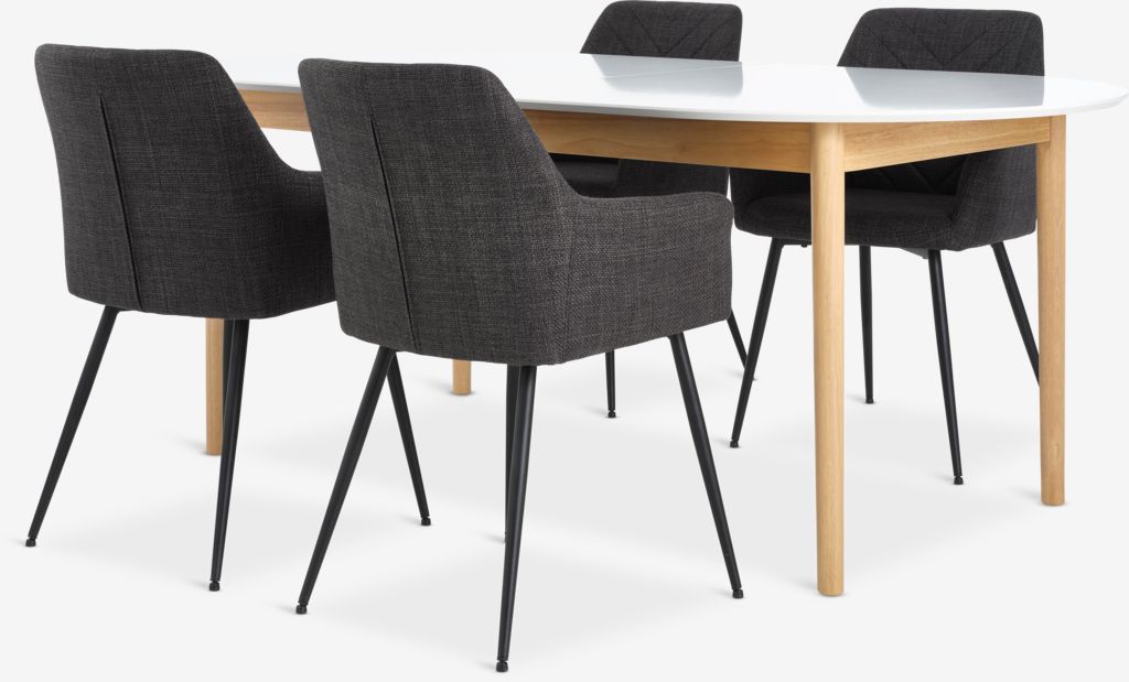 MARSTRAND D200/280 sto bela + 4 PURHUS stolice siva