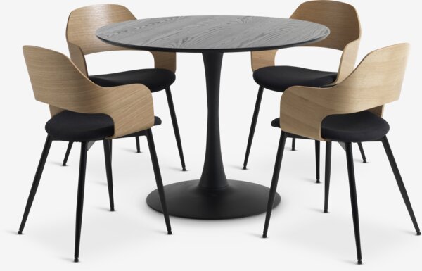 RINGSTED + HVIDOVRERINGSTED Ø100 sto crna + 4 HVIDOVRE stolice hrast/crna