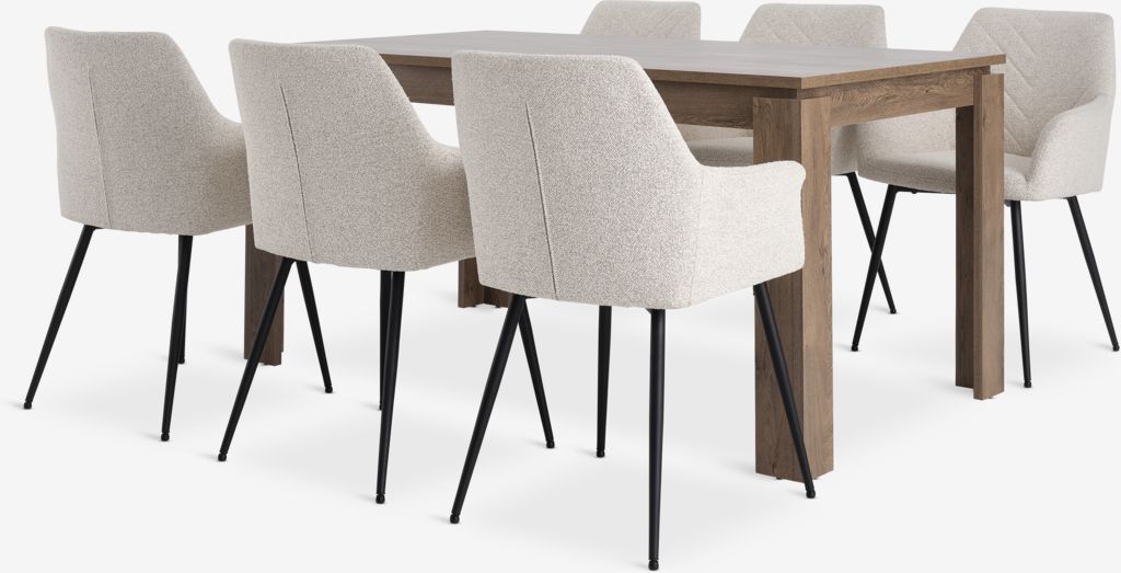 VEDDE + PURHUSVEDDE D160 sto divlji tamni hrast + 4 PURHUS prlj.bela/crna