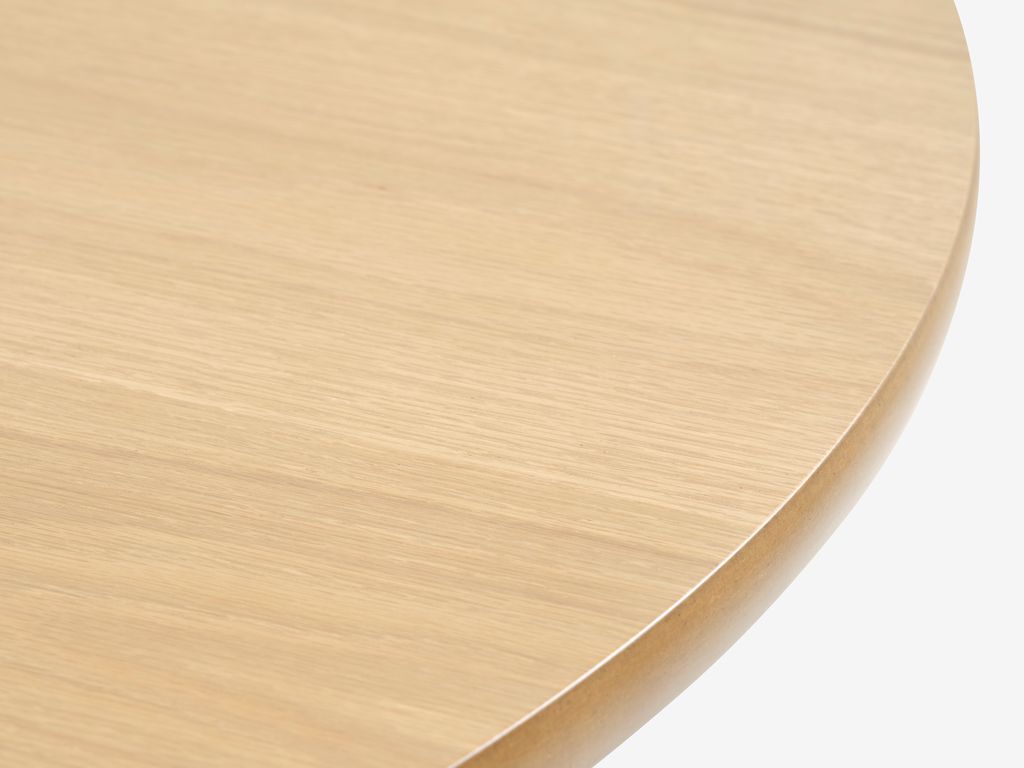 Okrugli trpezarijski sto sa pločom od hrastovog furnira i crnim nogama od masivnog drveta. Drvo je lakirano za dugotrajnost. Ø105xV75 cm
